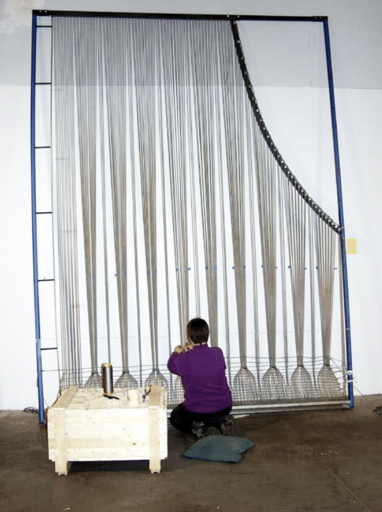 13 Textile Wallah, Part of the Series Hall of Architecture, Pittsburgh Center for the Arts 2009. Tea dyed cotton seine twine. 96” x 180” x 1/4”